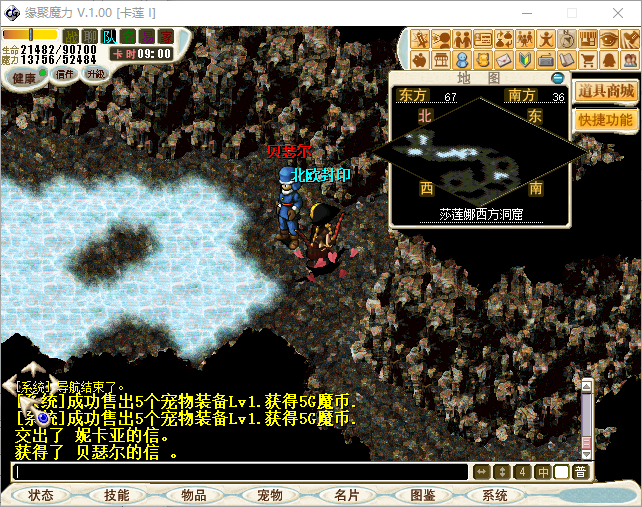 2:来到沙莲娜西边洞窟(阿巴尼斯村出南门导航)67.35找贝瑟尔说话,失去妮卡亚的信,得到贝瑟尔的信。(挖9矿的洞窟)