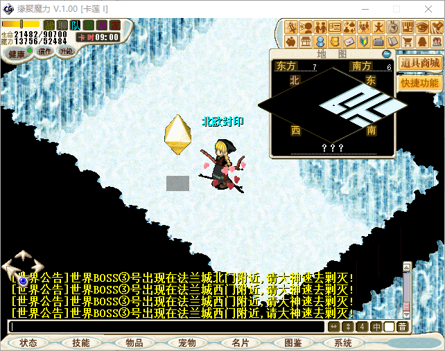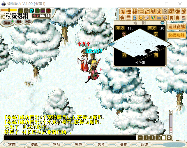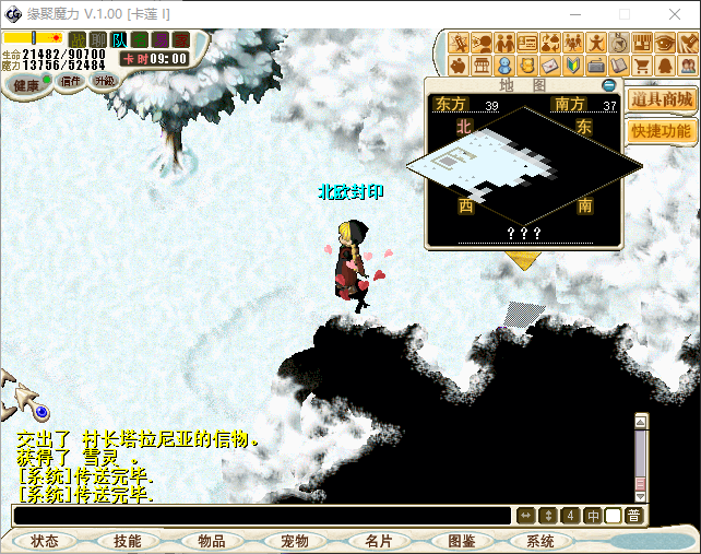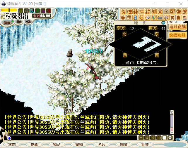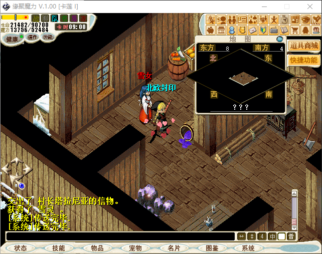 备注,第9步不完成,保留村长的信物,打完雪女直接传送回蒂娜村,从蒂娜村门口的妮卡亚凭借雪戒可以直接传送回雪山山顶重新打雪女,重复刷螳螂改图。