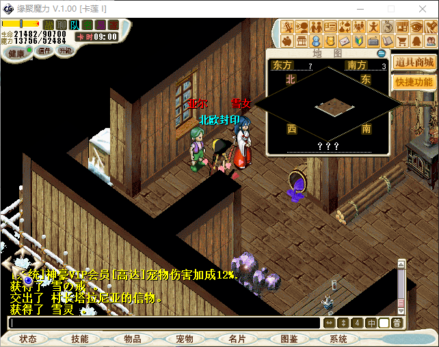 9:与旁边的亚尔对话,交出村长塔拉尼亚的信物,得到雪灵。