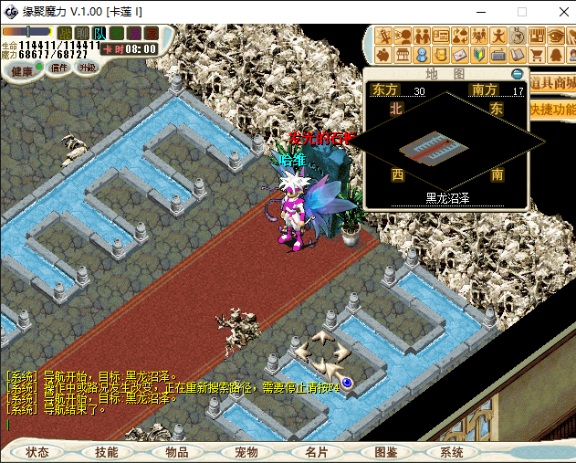 7.前往哥拉尔镇(128.95)处黄色传送石,进入后抵达 灰色地带,通过随机迷宫后至顶层调查发光的石板(31.17),输入尼科马塔.进入战斗